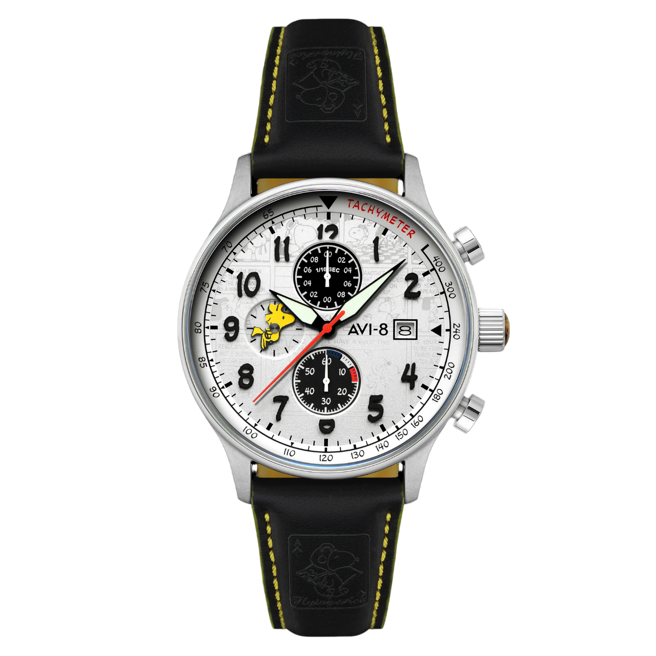 O AVI-8 Hawker Hurricane Peanuts Snoopy Limited Edition AV-4135-01 é uma edição especial limitada e enumerada a apenas 250 unidades no mundo, criada como um gesto de gratidão aos apoiadores da marca. O mostrador branco serve de palco para Snoopy e Woodstock, trazendo leveza, humor e um forte apelo nostálgico. A combinação entre o universo Peanuts e a linguagem clássica da aviação transforma o relógio em uma peça carismática, divertida e imediatamente reconhecível no pulso.