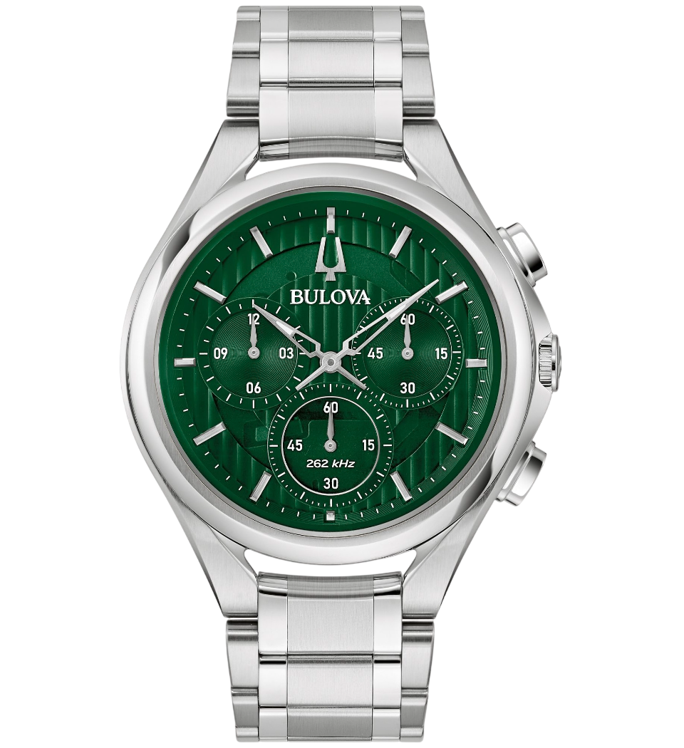 O Bulova Curv Precisionist 96A297 é fruto da ousadia e inovação que consagraram a Bulova desde 1875. A coleção Curv revolucionou a relojoaria ao apresentar o primeiro movimento cronógrafo curvo do mundo, proporcionando ergonomia e conforto superiores. Aliada à tecnologia Precisionist, que vibra a 262 kHz — oito vezes mais rápida que um quartzo convencional, essa criação traduz o compromisso da marca com precisão e elegância atemporal.
