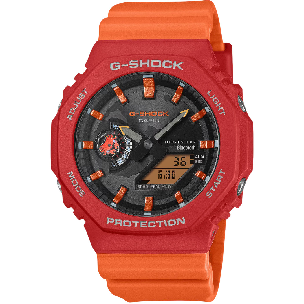 O G-SHOCK GA-B2100DF-4A faz parte da colaboração entre a Casio e a Fundação Charles Darwin, unindo relojoaria, ciência e conservação ambiental em uma homenagem direta à biodiversidade das Ilhas Galápagos. Inspirado no caranguejo Sally Lightfoot, espécie conhecida por habitar costões rochosos e praias arenosas do arquipélago, o modelo traduz em design a impressionante adaptação desse animal a ambientes extremos, onde força, agilidade e resistência são essenciais para sobreviver à ação constante das ondas.