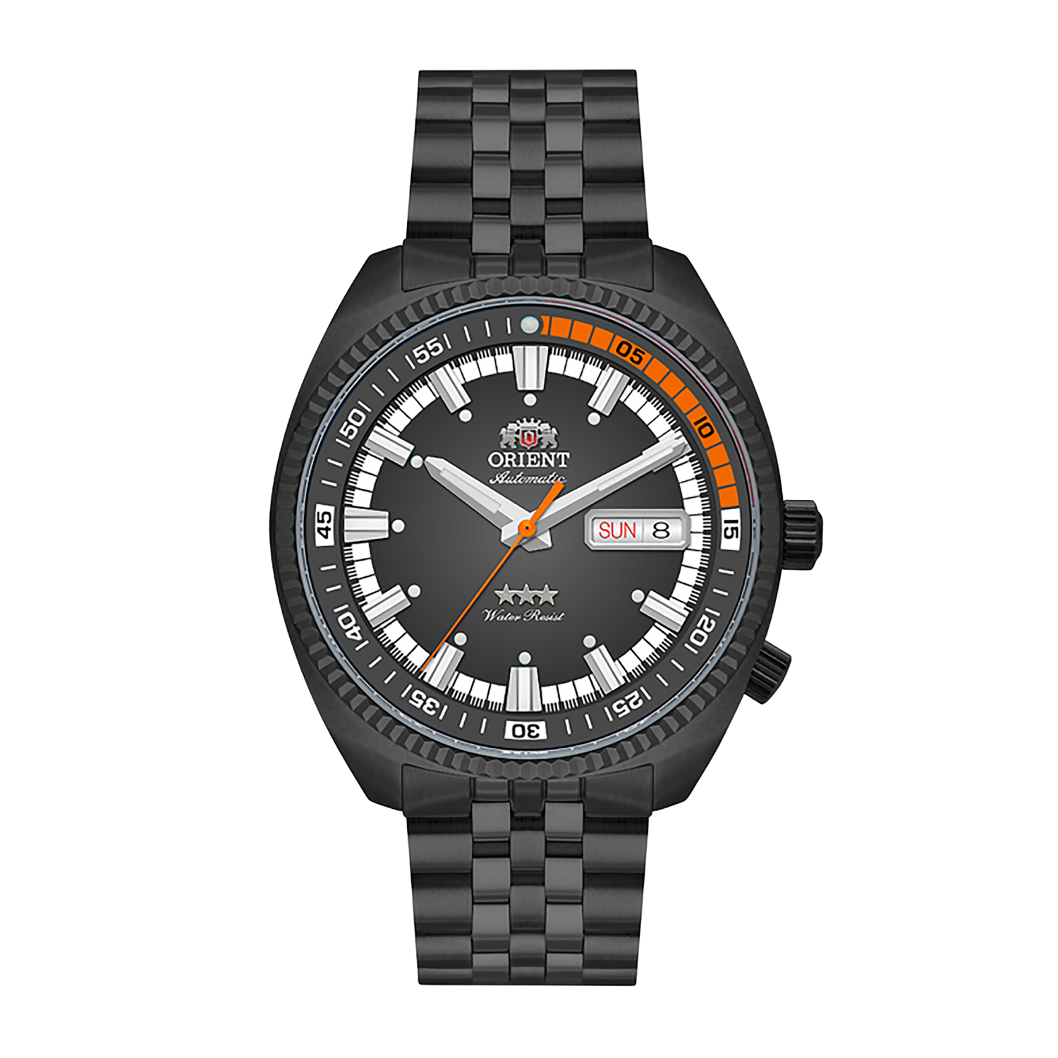 Esta releitura moderna preserva a estética marcante dos modelos históricos e traz de volta a essência dos antigos tool watches japoneses, com visual de peça de arquivo histórico, mas com a solidez e a confiabilidade que o público contemporâneo espera. O bezel canelado cria profundidade e presença, enquanto o aro interno bidirecional reforça o caráter instrumental do relógio. O mostrador em camadas, com índices aplicados recebe acabamento sunray escuro com escovação radial refinada, criando um jogo de luz que alterna entre tons profundos e reflexos metálicos, trazendo vida e profundidade ao mostrador a cada movimento do pulso ampliando a sensação de profundidade e identidade visual. Um clássico que não apenas retorna, evolui.