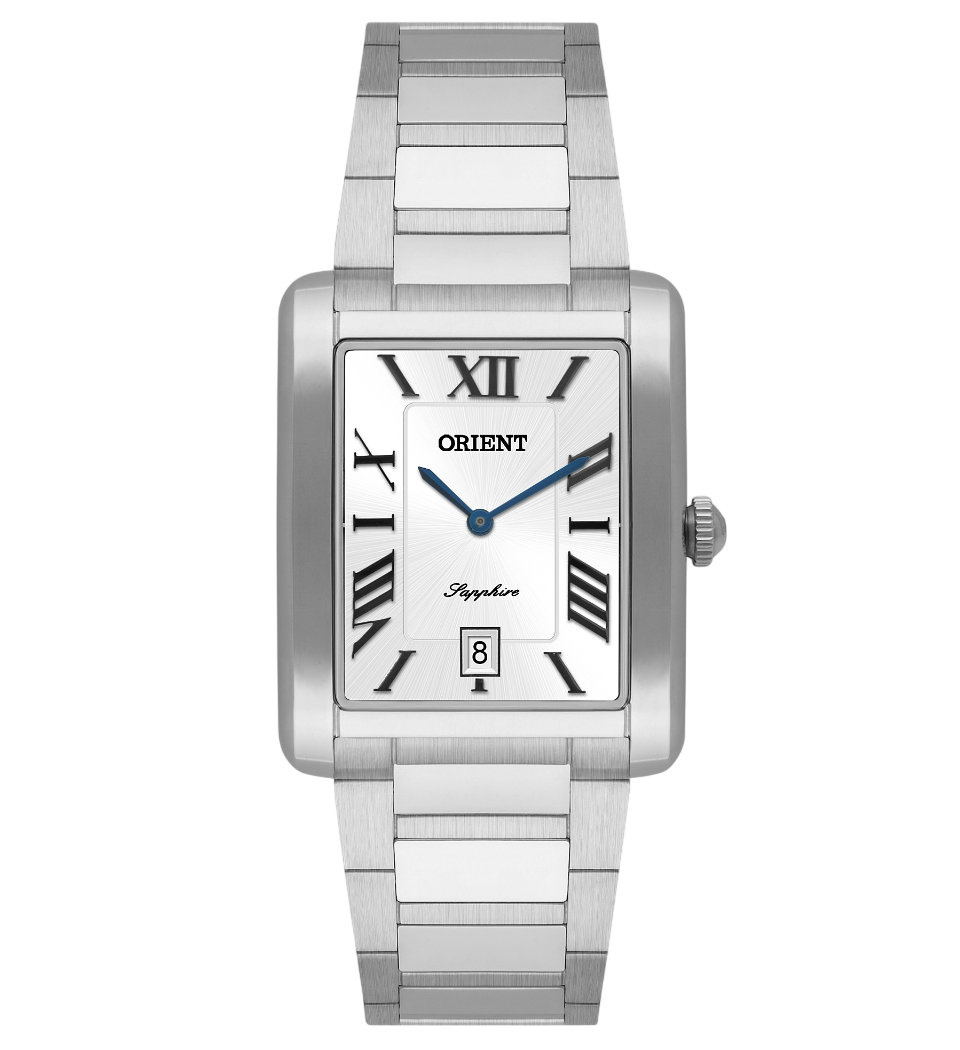 O Orient Tank Eternal GBSS1058 S3SX resgata o charme dos relógios retangulares clássicos com um toque contemporâneo. Seu mostrador branco com algarismos romanos e design minimalista expressam elegância e equilíbrio, tornando-o uma escolha refinada para quem valoriza o estilo atemporal.