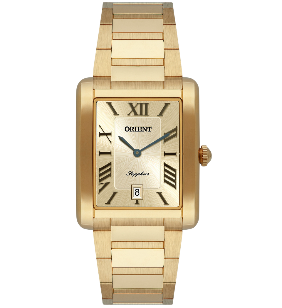 O Orient Tank Eternal GGSS1021 C3KX resgata o charme dos relógios retangulares clássicos com um toque contemporâneo. Seu mostrador dourado com índices em algarismos romanos ali design minimalista e elegância, tornando-o uma escolha refinada para quem valoriza o estilo atemporal.