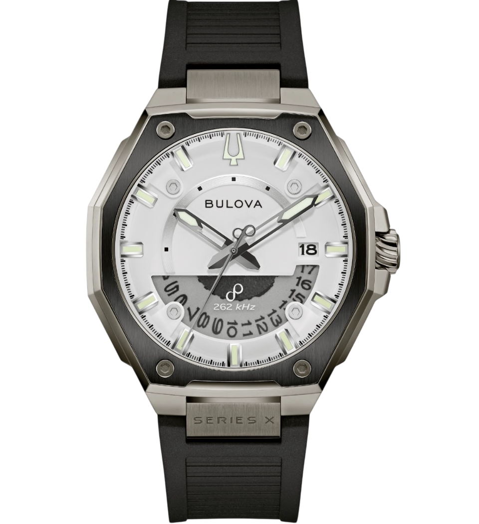 Com seus elementos de design arquitetônico distintos, o Bulova 98B457 Série X faz uma primeira impressão ousada. Sua caixa em aço inoxidável cinza com banho iônico trazem um visual robusto e moderno, complementado pela pulseira de borracha HNBR preta de alta resistência.