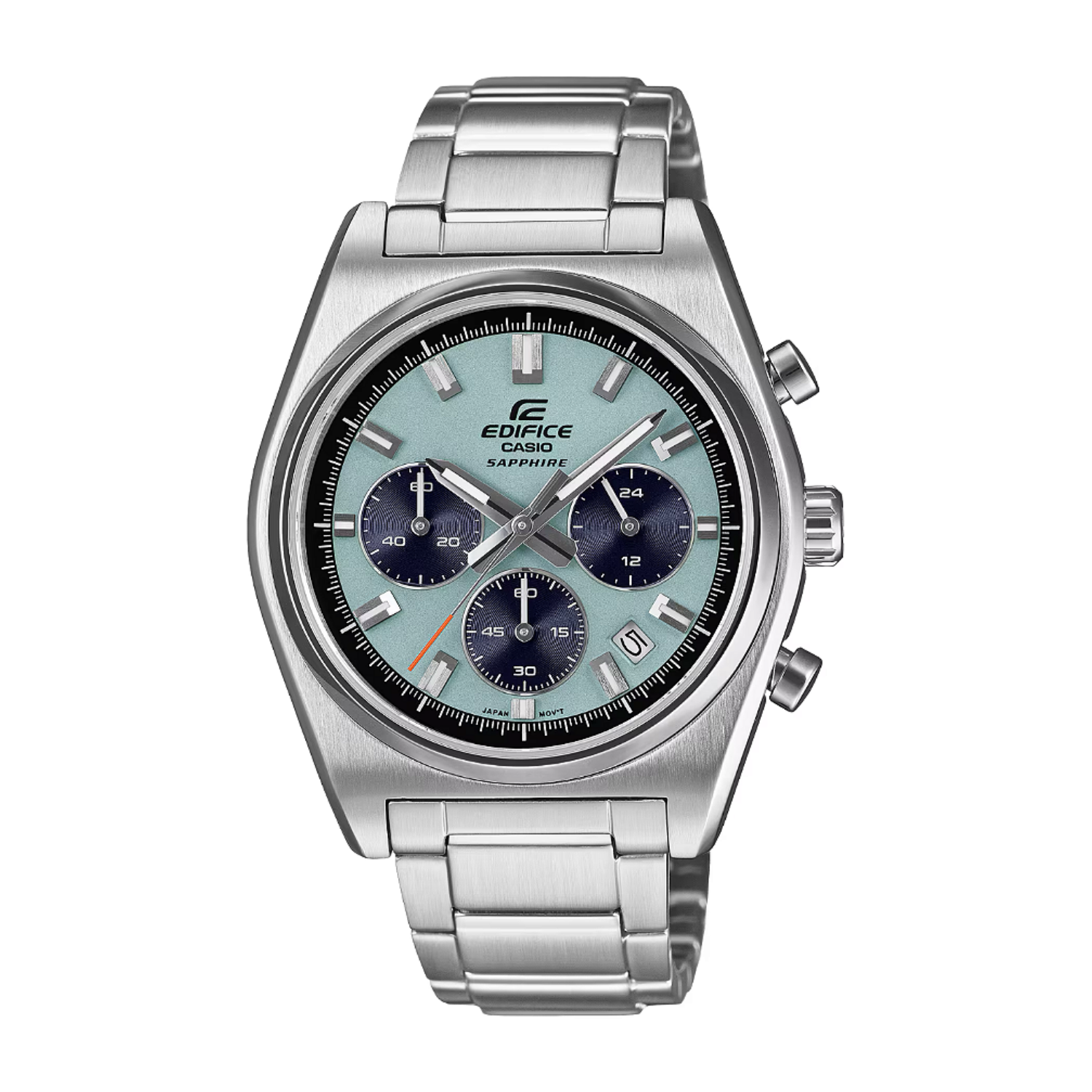 O Casio Edifice EFB-730D traduz a essência do automobilismo clássico em forma de relógio. Inspirado nos painéis de instrumentos dos carros esportivos que marcaram época, seu mostrador segue a tradicional configuração 3-6-9 dos submostradores, uma assinatura visual dos cronógrafos de corrida. A linha Edifice nasceu justamente dessa ligação com o mundo da velocidade e da engenharia de precisão, sendo até hoje associada a equipes e categorias do automobilismo, carregando a ideia de desempenho, leitura rápida e confiabilidade.