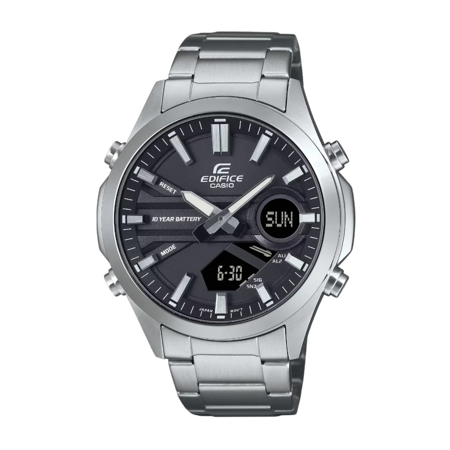 O relógio Casio Edifice EFV-C120D-1ADF une praticidade e desempenho em um design elegante e compacto. Combinando visor analógico e digital, o modelo oferece legibilidade clara e estilo moderno, sendo ideal para o dia a dia e atividades diversas.