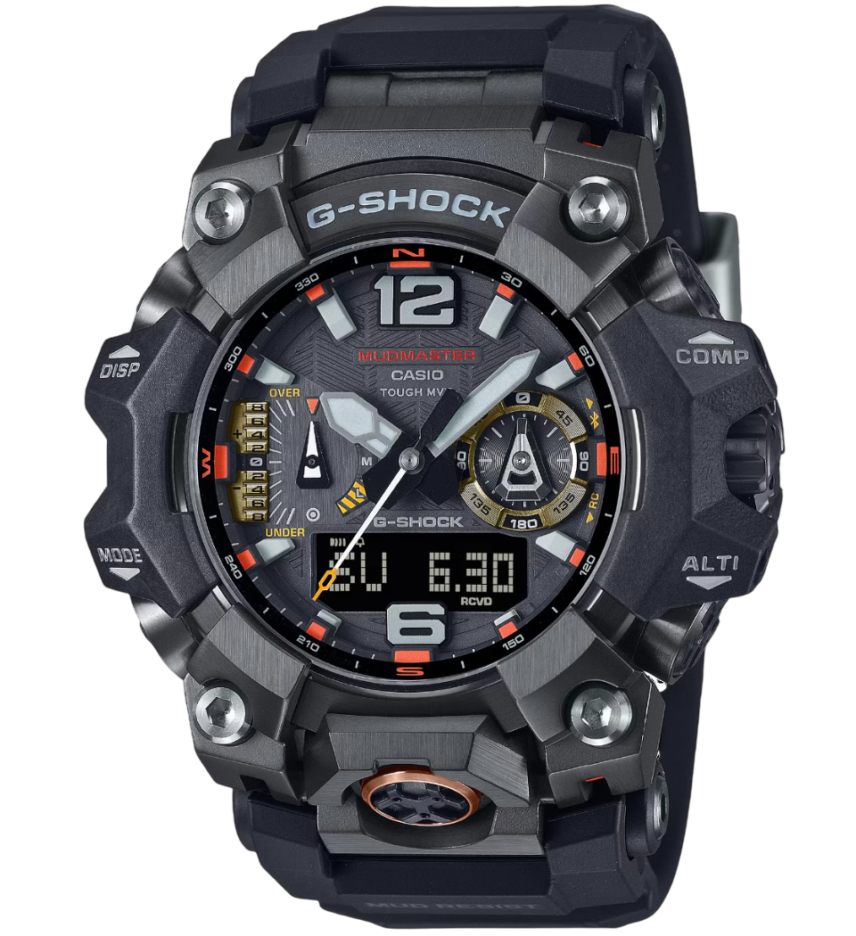 A linha G-Shock Master of G oferece robustez e desempenho máximo para qualquer desafio. Inspirada nos modelos GRAVITYMASTER, MUDMASTER e MUDMAN, essa série combina resistência à poeira, lama, choques e vibrações. O MUDMASTER GWG-B1000EC traz tecnologia avançada com energia solar, Bluetooth®, controle de rádio e Sensor Triplo para precisão em qualquer missão. Feito com resina reforçada com fibra de carbono e metais forjados, o modelo garante durabilidade e conforto.