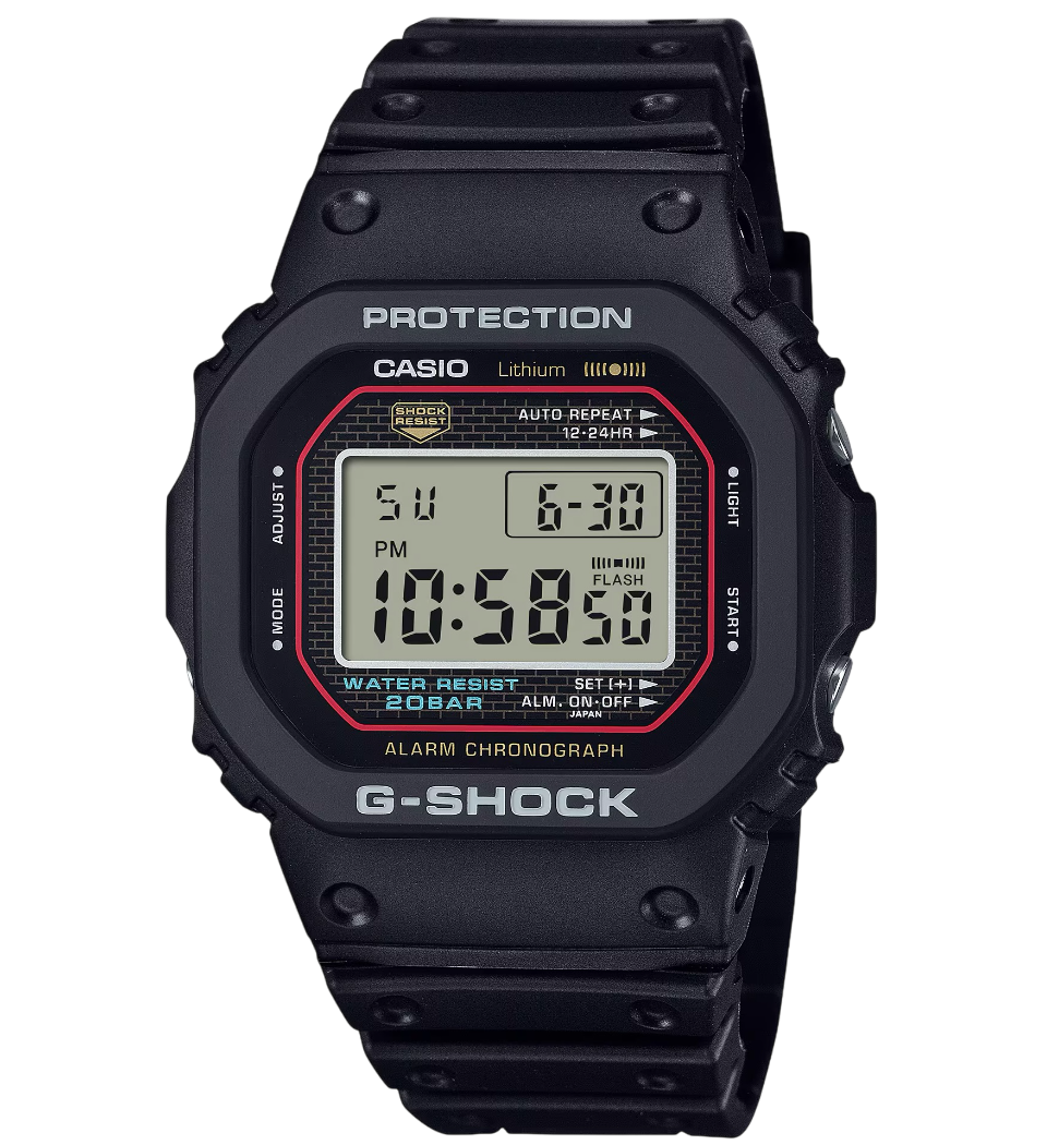O Casio G-SHOCK DW-5000R-1ADR celebra o legado absoluto da marca com uma recriação moderna do primeiro G-SHOCK lançado nos anos 80. Ele mantém a estética clássica com caixa em aço inoxidável e resina, reproduzindo fielmente proporções, formas e detalhes originais.