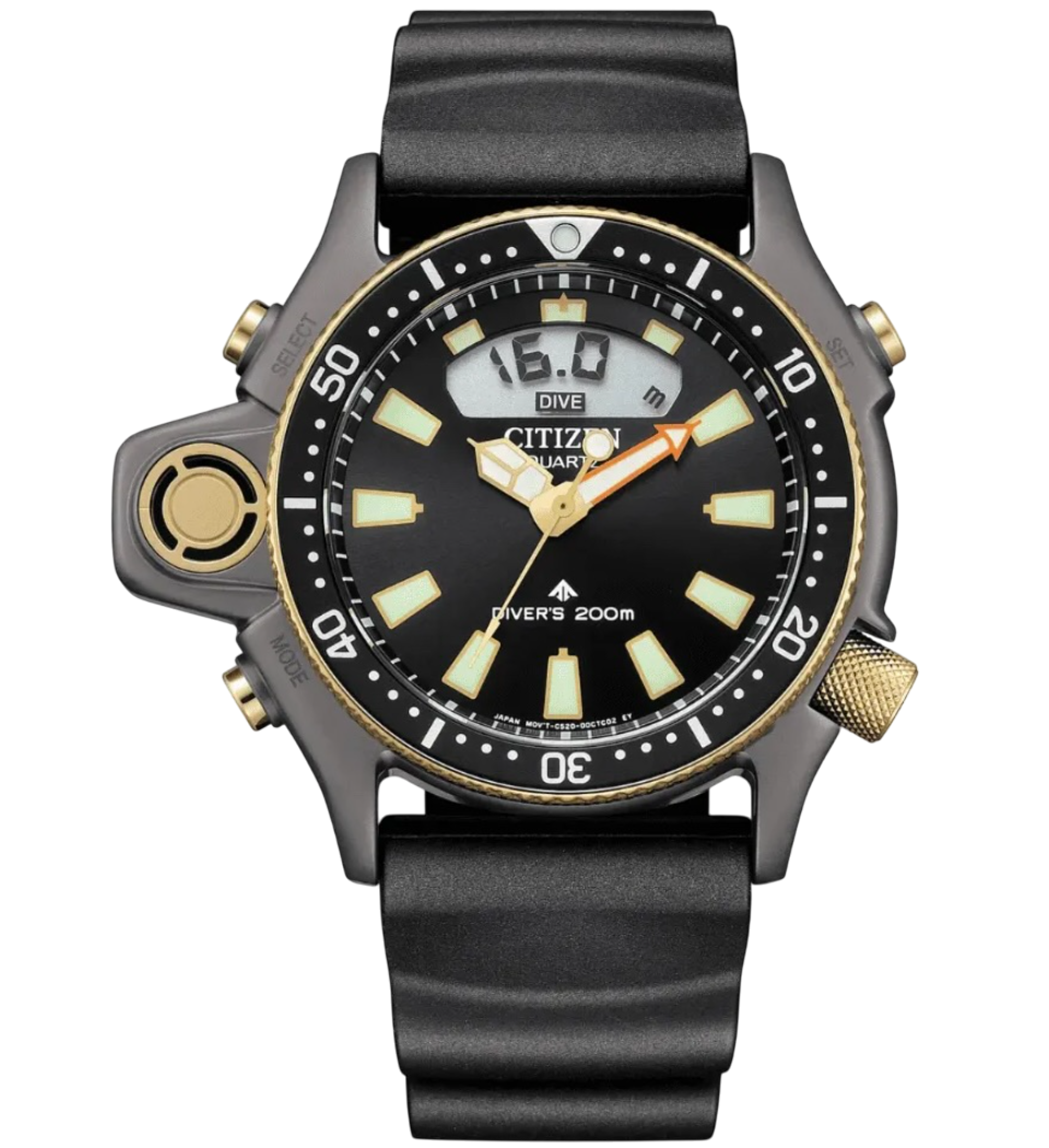 Seu design mantém o caráter robusto e funcional do original, com o icônico sensor na posição das 9 horas e detalhes em dourado que realçam a aparência comemorativa. A combinação entre herança e modernidade torna o Aqualand 40th Anniversary uma peça de coleção que reflete a essência do espírito aventureiro da linha Promaster.