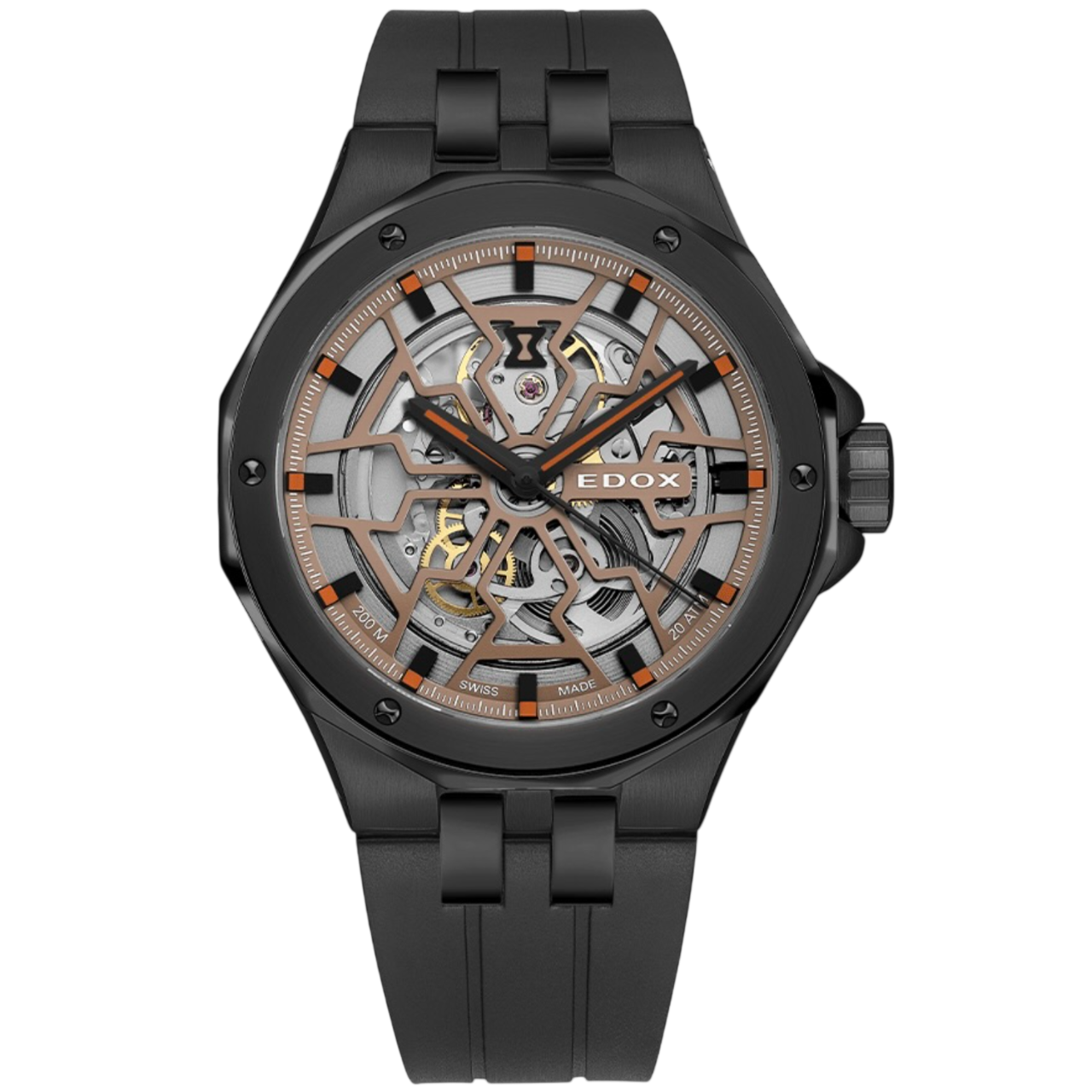 A linha Delfin carrega mais de 70 anos de herança da Edox no desenvolvimento de relógios de mergulho profissionais. Reconhecida pela icônica luneta de 12 faces, símbolo da coleção, a Delfin sempre foi associada à resistência, confiabilidade e design funcional. Nesta versão Mecano, essa tradição se une a uma linguagem moderna e sofisticada, transformando o clássico diver em uma peça que dialoga com a engenharia exposta e o apelo contemporâneo.