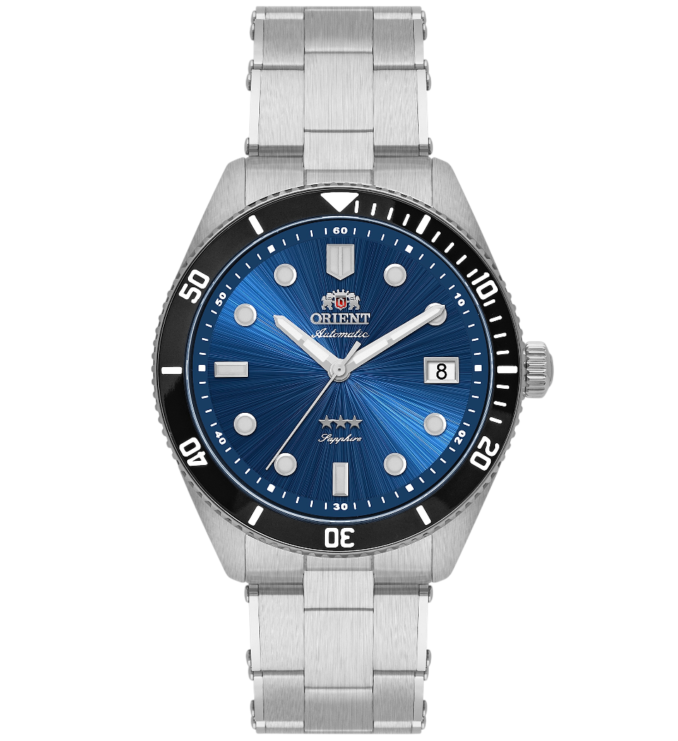 Com vidro de safira, pulseira de aço inoxidável e index e ponteiros com material luminoso, o modelo oferece excelente legibilidade e resistência. Versátil e acessível, é ideal para quem busca um relógio elegante, confiável e pronto para desafios subaquáticos.