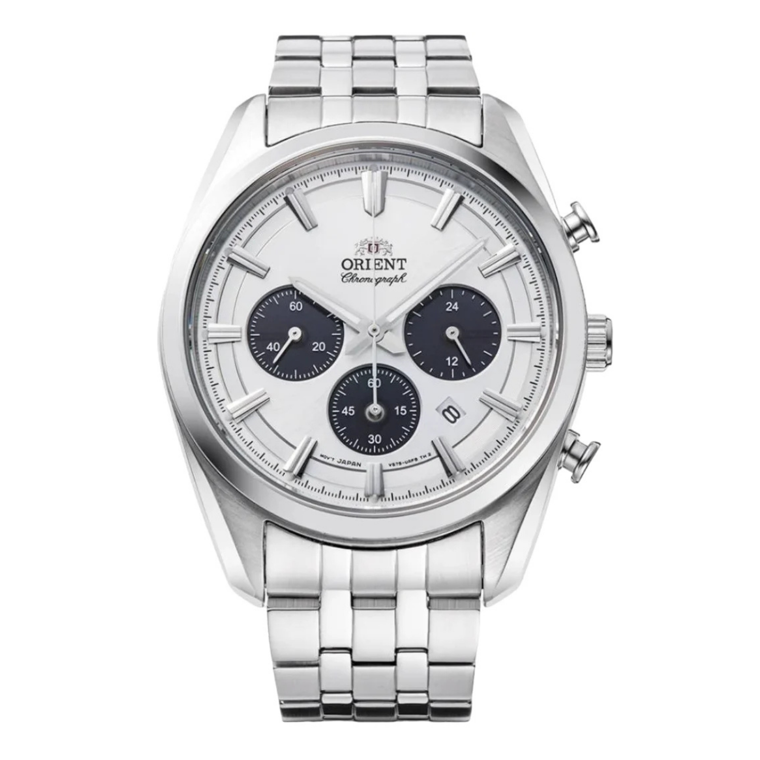 Neste cronógrafo solar, a Orient combina funcionalidade técnica com elegância visual. O mostrador branco de leitura clara dialoga com a caixa de proporções equilibradas, enquanto os submostradores do cronógrafo acrescentam profundidade e caráter esportivo sem comprometer a sofisticação do conjunto, o famoso estilo "Panda". A tecnologia solar reforça o conceito contemporâneo do modelo, oferecendo praticidade, sustentabilidade e precisão contínua, em perfeita sintonia com o estilo de vida atual.