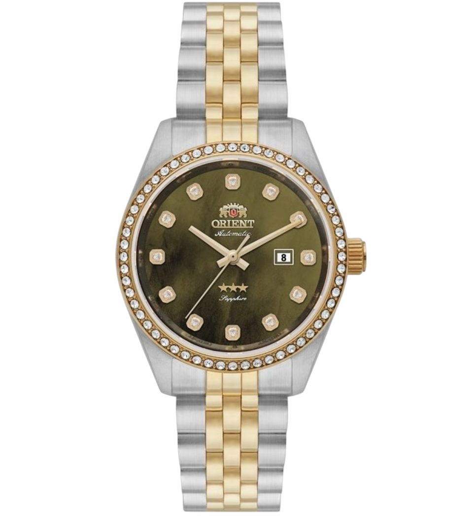Nesta interpretação feminina, a Orient preserva esse legado mecânico ao mesmo tempo em que apresenta um toque de delicadeza e sofisticação. O mostrador em madrepérola, os índices e o bezel com aplicação em cristal criam efeitos luminosos elegantes, reforçando a sensação de refinamento.