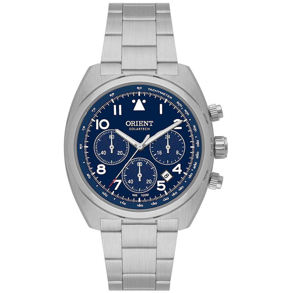 O Orient Solartech MBSSC297 D2SX une estilo e tecnologia solar em um design contemporâneo, com mostrador azul e detalhes brancos que ressaltam a sofisticação. Seu funcionamento movido à luz garante autonomia e praticidade, sem necessidade de troca de bateria.
