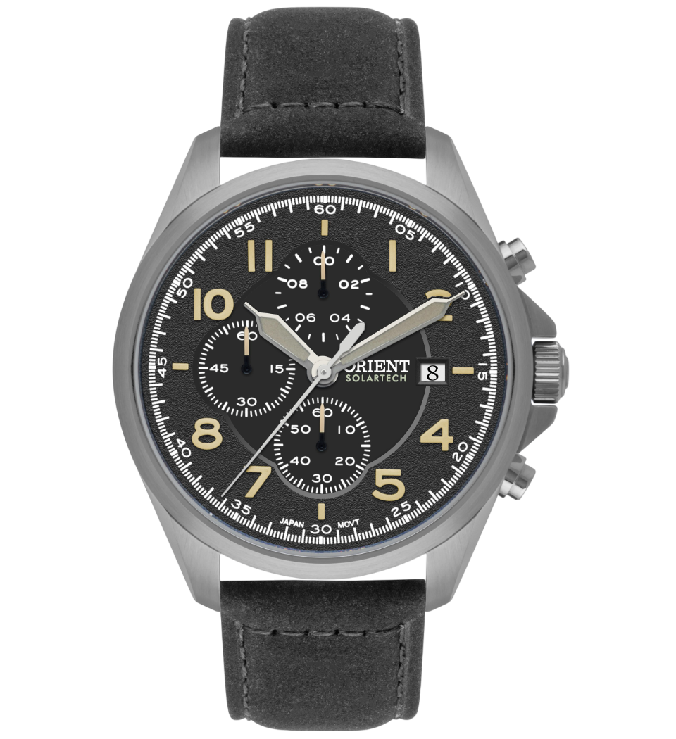 O relógio Orient Solartech MBSCC071 P2PX une estilo e tecnologia solar em um design contemporâneo, com mostrador preto e detalhes prateados que ressaltam a sofisticação. Seu funcionamento movido à luz garante autonomia e praticidade, sem necessidade de troca de bateria.