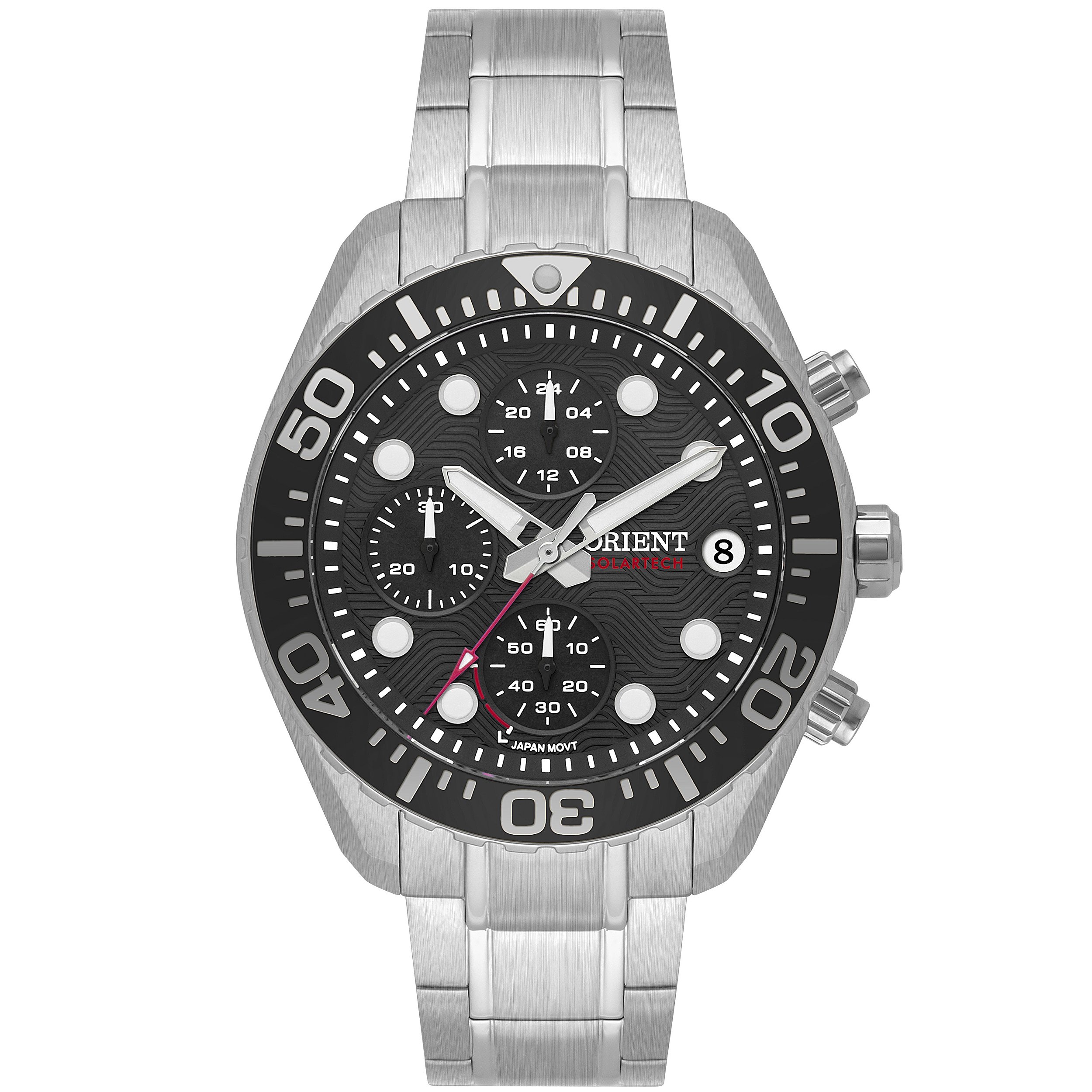O relógio Orient Solartech MBSSC300 P1SX une estilo e tecnologia solar em um design contemporâneo, com mostrador preto e detalhes prateados que ressaltam a sofisticação. Seu funcionamento movido à luz garante autonomia e praticidade, sem necessidade de troca de bateria.