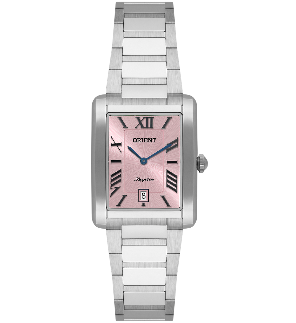 O Orient Tank Eternal Feminino LBSS1035 R3SX resgata o charme dos relógios retangulares clássicos com um toque contemporâneo. Seu mostrador rosa com algarismos romanos e design minimalista expressam elegância e equilíbrio, a combinação com seus ponteiros azuis vividos e efeito sunburst tornam esse modelo uma escolha refinada para quem valoriza o estilo atemporal.