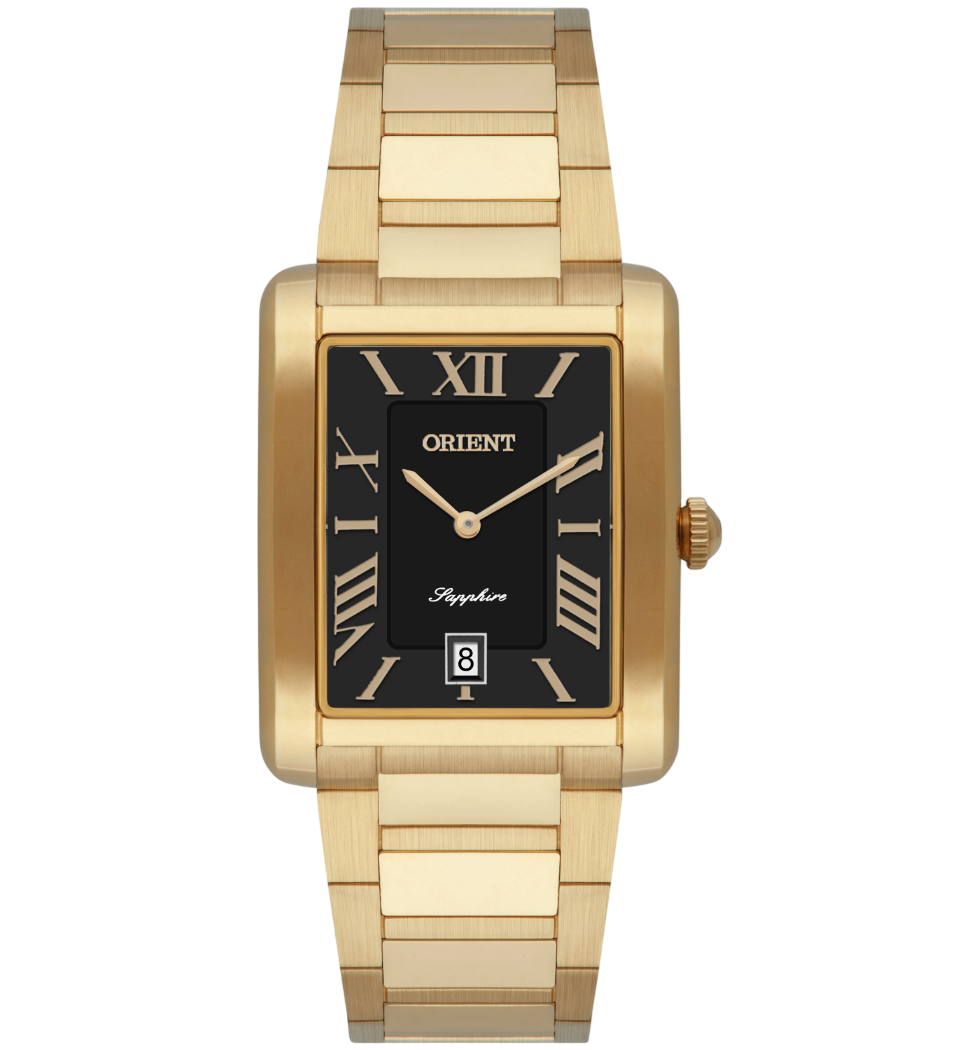 O Orient Tank Eternal Feminino LGSS1021 G3KX resgata o charme dos relógios retangulares clássicos com um toque contemporâneo. Seu mostrador preto com índices dourados em algarismos romanos alia design minimalista com elegância. A combinação com seus ponteiros dourados vividos, caixa e pulseira douradas tornam esse modelo uma escolha refinada para quem valoriza o estilo atemporal.