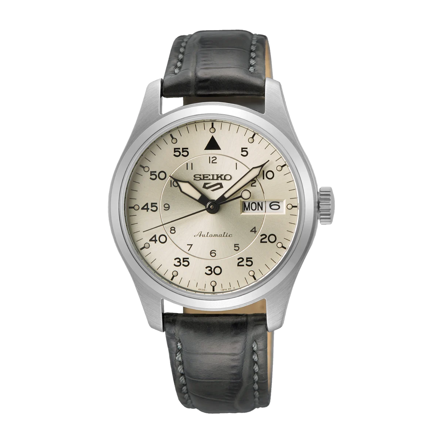 O Seiko 5 Sports Flieger SRPJ87 é uma interpretação contemporânea dos clássicos relógios de aviação, inspirados nos instrumentos utilizados por pilotos ao longo do século XX, onde clareza, equilíbrio e leitura imediata eram essenciais. Nesta versão, o modelo ganha um tom mais sofisticado com o mostrador em coloração champanhe, que suaviza a estética utilitária e adiciona um caráter elegante, quase vintage, remetendo aos relógios de cockpit reinterpretados para o uso urbano.