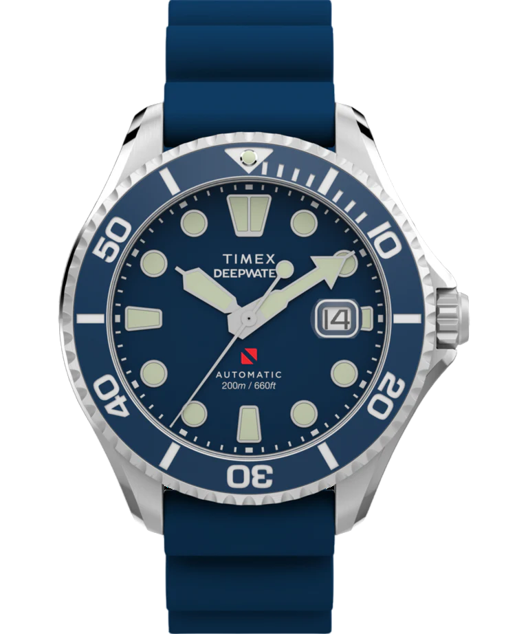 O Timex Deepwater Meridian 200 Automatic TW2Y39900 é um relógio robusto e refinado, projetado para aventuras dentro e fora d’água. Com caixa de 44.0 mm em aço inoxidável e mostrador azul de alta legibilidade, combina resistência, precisão e elegância esportiva em um único modelo.