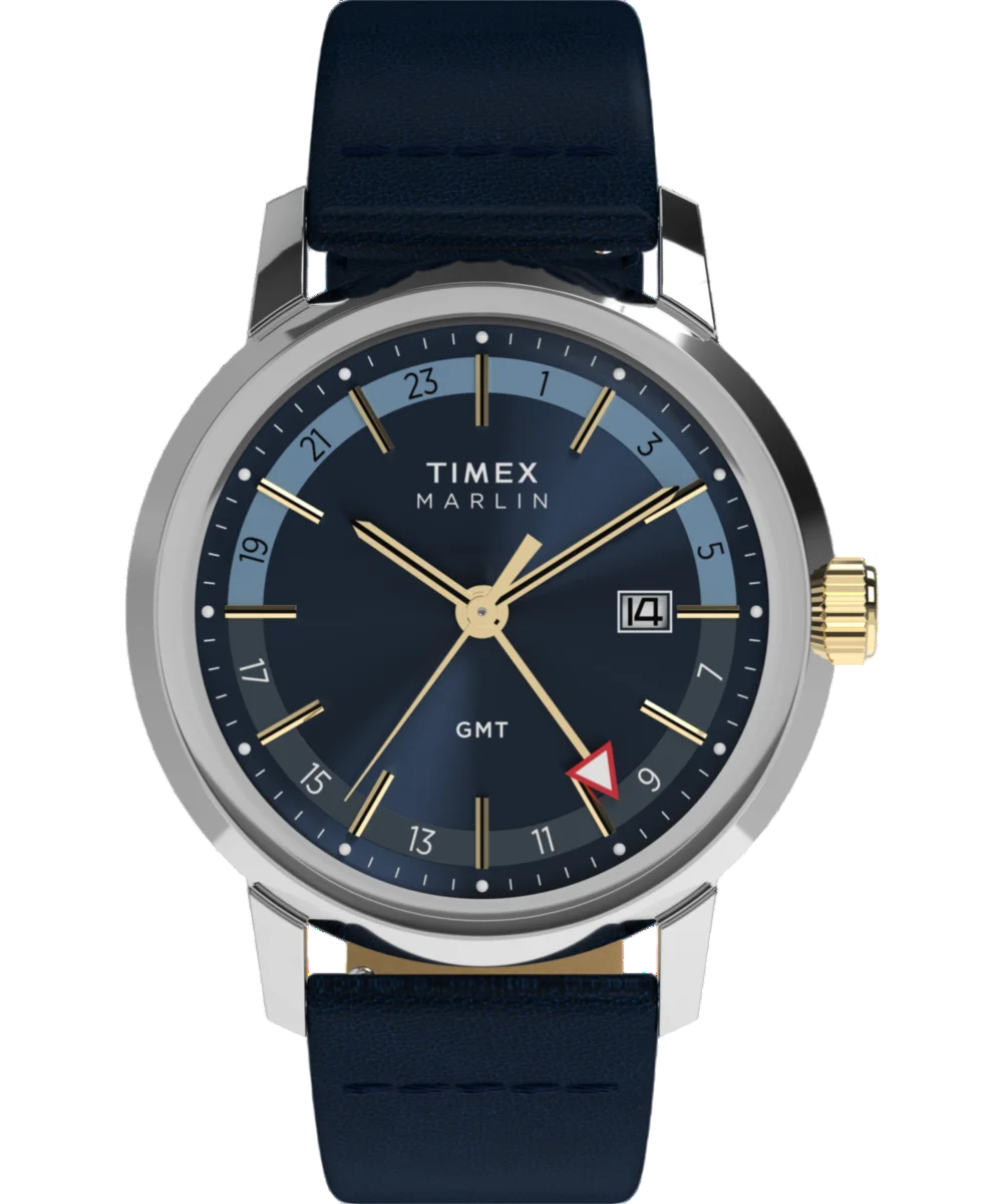 O Timex Marlin GMT TW2Y47900 combina a elegância clássica da linha Marlin com a praticidade da função GMT, perfeita para quem alterna entre fusos horários. O mostrador azul entrega sofisticação atemporal com leitura clara e equilibrada.