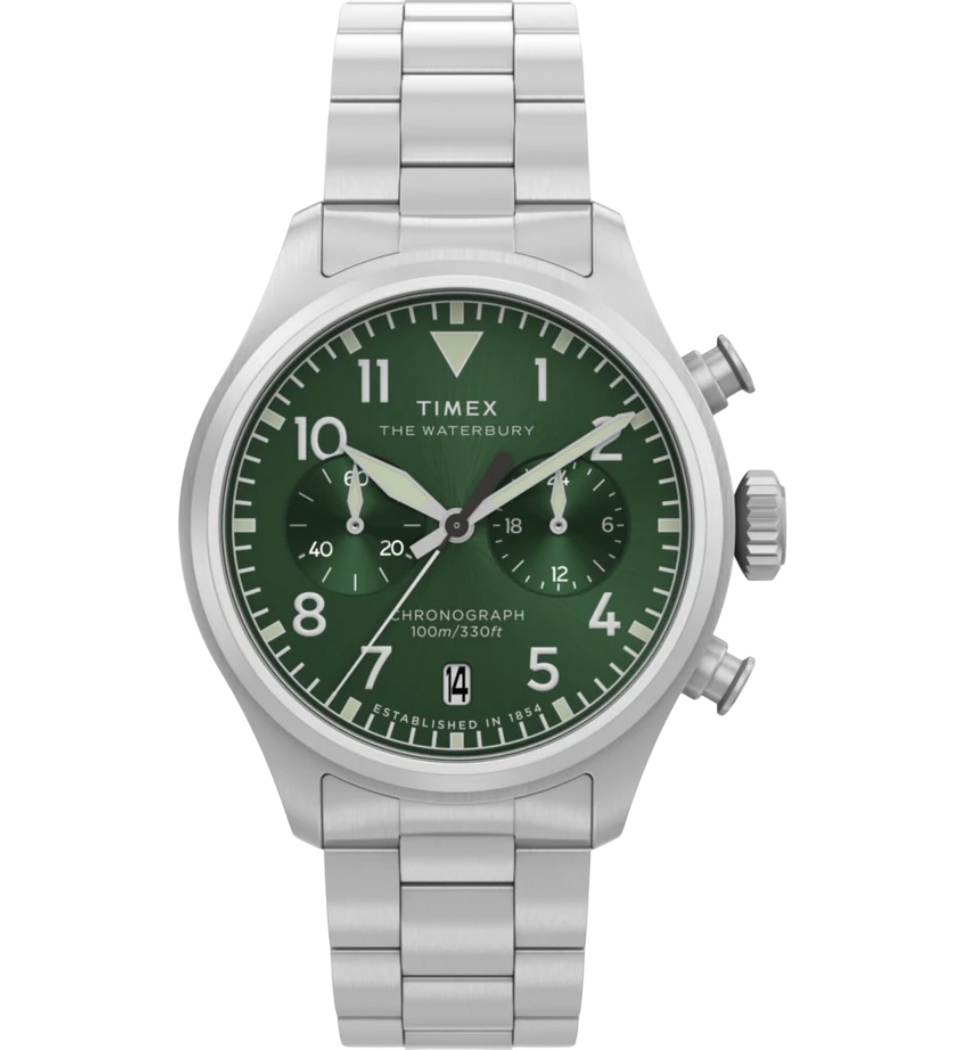 O Timex Waterbury Ace Cronograph TW2Y19100 é uma releitura moderna dos clássicos relógios de piloto, trazendo a herança histórica da Timex com um toque contemporâneo. Inspirado no estilo “flieger”, apresenta mostrador preto de alto contraste com numerais arábicos legíveis, ponteiros luminosos e layout limpo que reforça o DNA funcional da linha Waterbury.