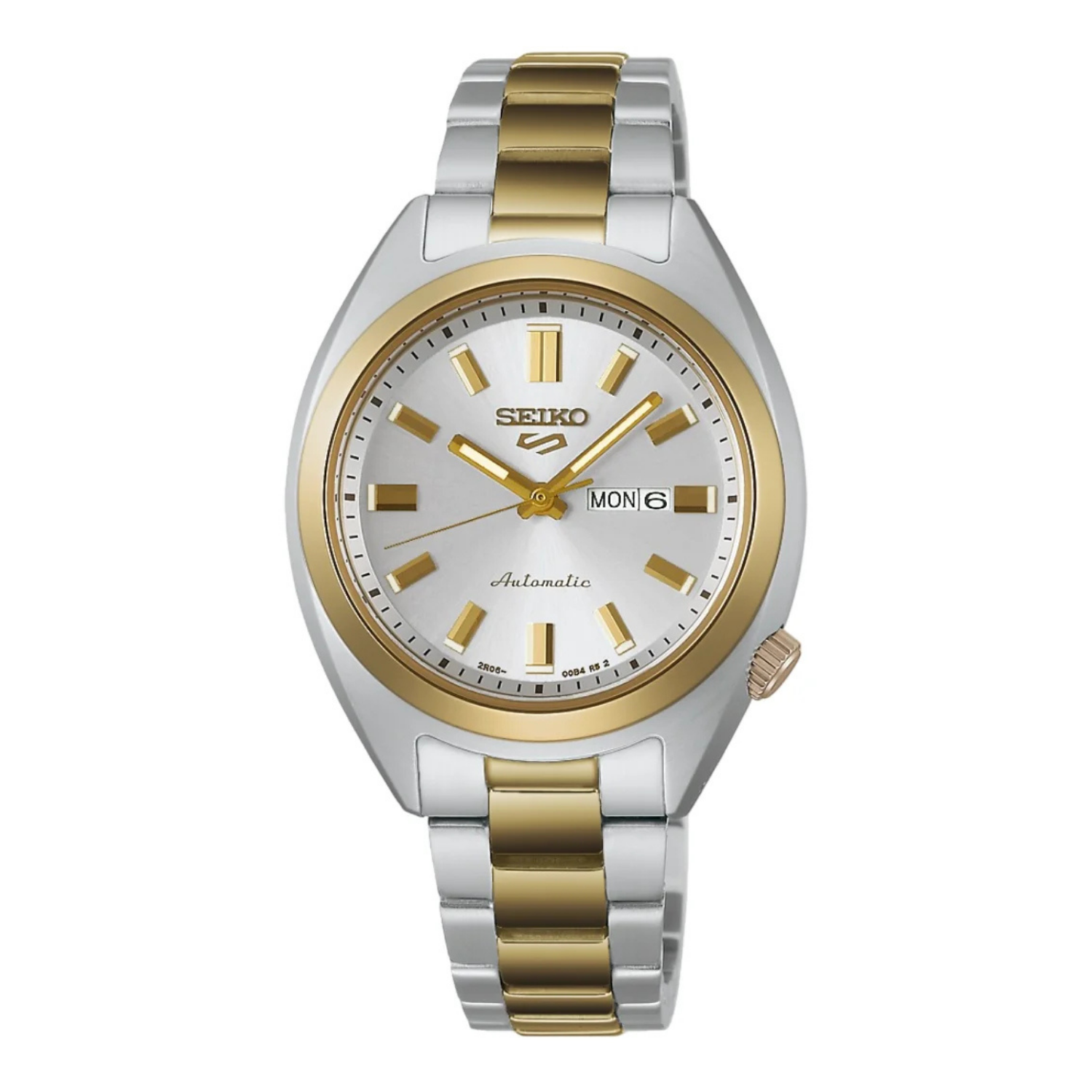 O Seiko 5 Sports feminino SRE024 resgata o espírito clássico da consagrada linha SNXS em uma proporção refinada de 32 mm, oferecendo uma leitura contemporânea de um dos designs mais icônicos da Seiko. Sua silhueta preserva o formato conhecido como Hebitama, apelido dado pelos entusiastas por lembrar uma cobra engolindo um ovo, agora reinterpretado em dimensões compactas que ampliam sua versatilidade e elegância.